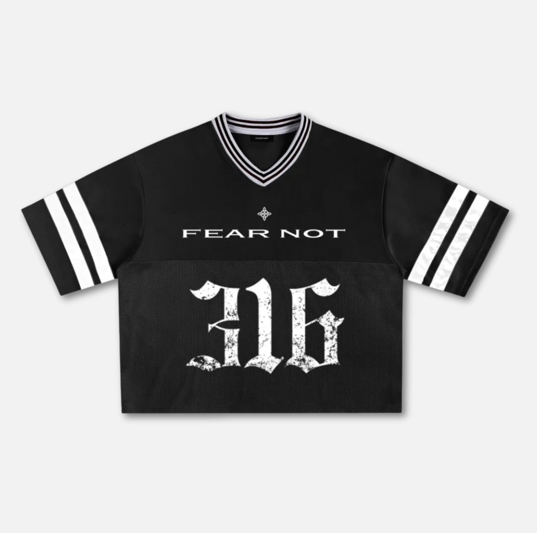 Championship uniforms tell stories of triumph—this one tells the greatest. Featuring "316" in distressed Old English across premium dual-layer construction with breathable mesh panels. When you're on the winning team, you wear it with confidence. Live victoriously.